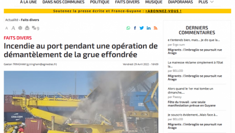 Incendie au port pendant une opération de démantèlement de la grue effondrée