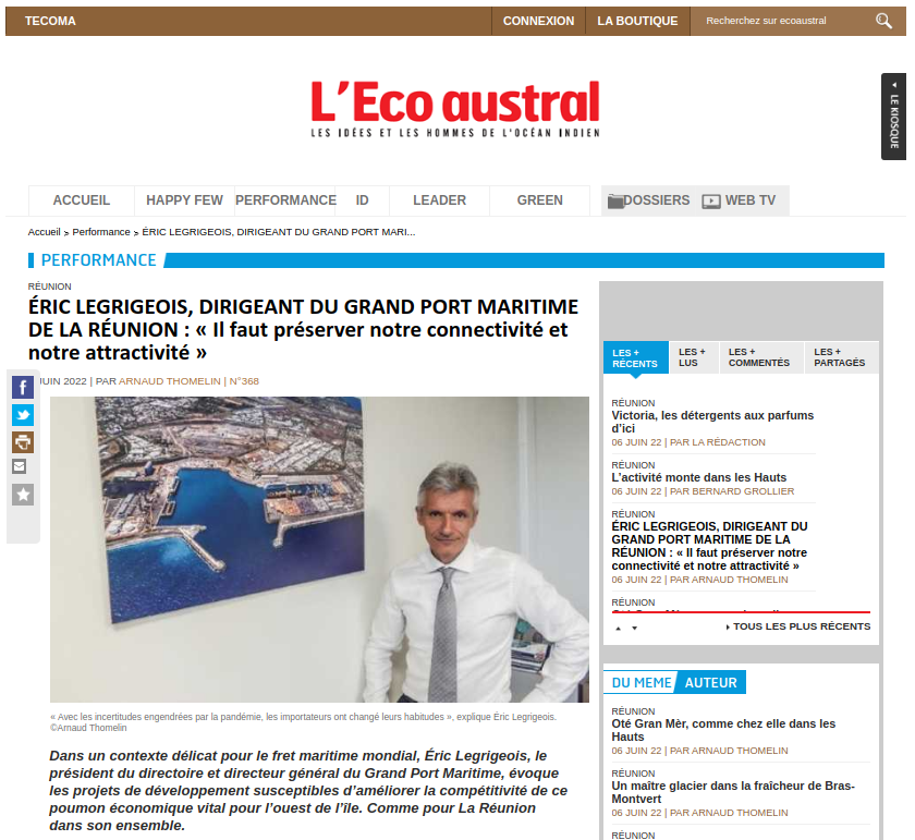 Dans un contexte délicat pour le fret maritime mondial, Éric Legrigeois, le président du directoire et directeur général du Grand Port Maritime, évoque les projets de développement susceptibles d’améliorer la compétitivité de ce poumon économique vital pour l’ouest de l’île. Comme pour La Réunion dans son ensemble