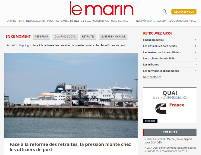 Sources: https://lemarin.ouest-france.fr/secteurs-activites/shipping/le-ton-monte-chez-les-officiers-de-port-face-la-reforme-des-retraites-46368