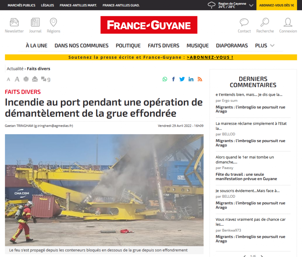 Alors qu’une opération de démantèlement de la grue tombée le 24 juin 2021 était en cours, une chaleur intense s’est propagée aux conteneurs situés en dessous et a provoqué un départ de feu en ce début d’après-midi au grand port maritime. Les flammes ont été maitrisées par les pompiers depuis.