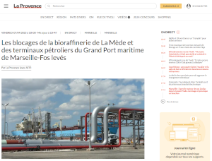 Sources: https://www.laprovence.com/actu/en-direct/85921963989740/fin-des-blocages-dune-bioraffinerie-de-totalenergies-et-du-grand-port-maritime-de-marseille-fos