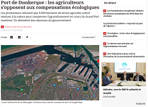 Sources: https://www.lafranceagricole.fr/artificialisation-des-terres/article/865137/port-de-dunkerque-les-agriculteurs-s-opposent-aux-compensations-ecologiques