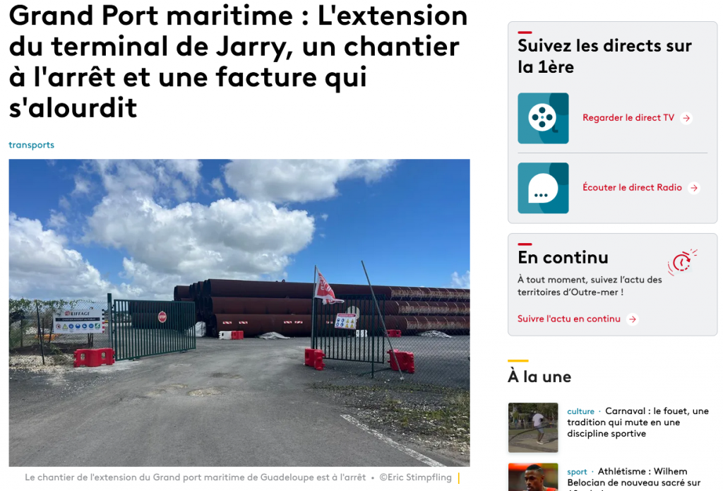 Grand Port maritime : L’extension du terminal de Jarry, un chantier à l’arrêt et une facture qui s’alourdit