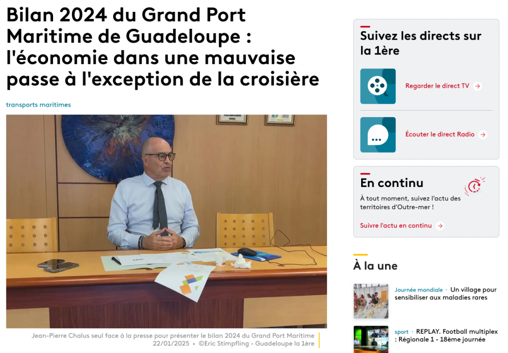 Sources: https://la1ere.francetvinfo.fr/guadeloupe/bilan-2024-du-grand-port-maritime-de-guadeloupe-l-economie-dans-une-mauvaise-passe-a-l-exception-de-la-croisiere-1555900.html