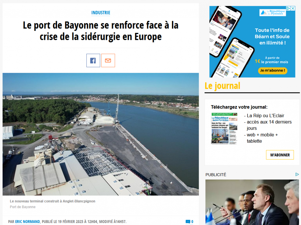 Le port de Bayonne se renforce face à la crise de la sidérurgie en Europe