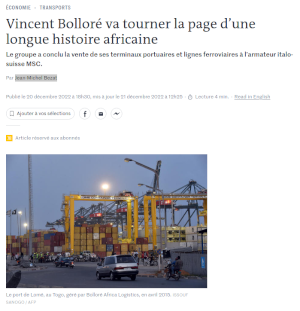 Sources: https://www.lemonde.fr/economie/article/2022/12/20/bollore-tourne-la-page-d-une-longue-histoire-africaine_6155205_3234.html#:~:text=Le%20groupe%20familial%20a%20gagn%C3%A9,abus%20de%20confiance%20en%20Afrique