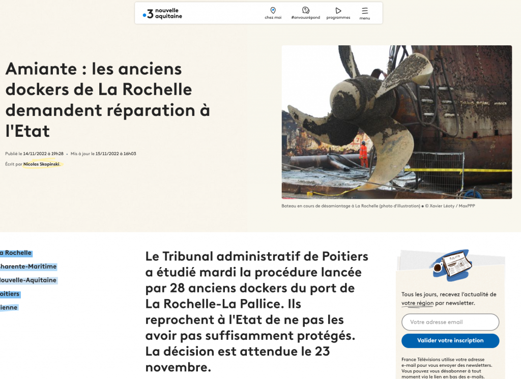 Amiante: les anciens dockers de La Rochelle demandent réparation à l’Etat