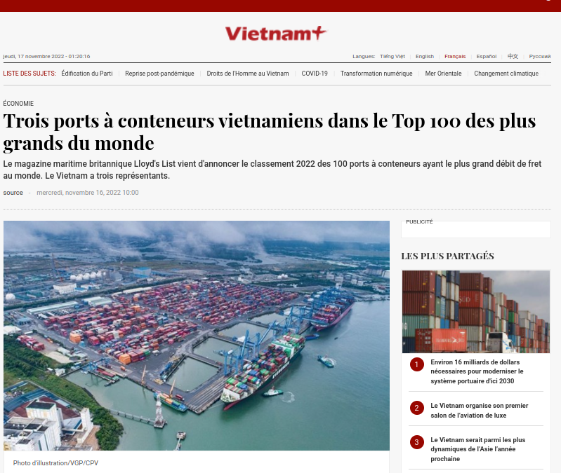 Sources: https://fr.vietnamplus.vn/trois-ports-a-conteneurs-vietnamiens-dans-le-top-100-des-plus-grands-du-monde/192082.vnp