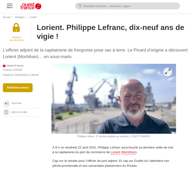 Sources: https://www.ouest-france.fr/bretagne/lorient-56100/lorient-philippe-lefranc-dix-neuf-ans-de-vigie-e4b48116-c192-11ec-89e5-c733ffc9a0a9